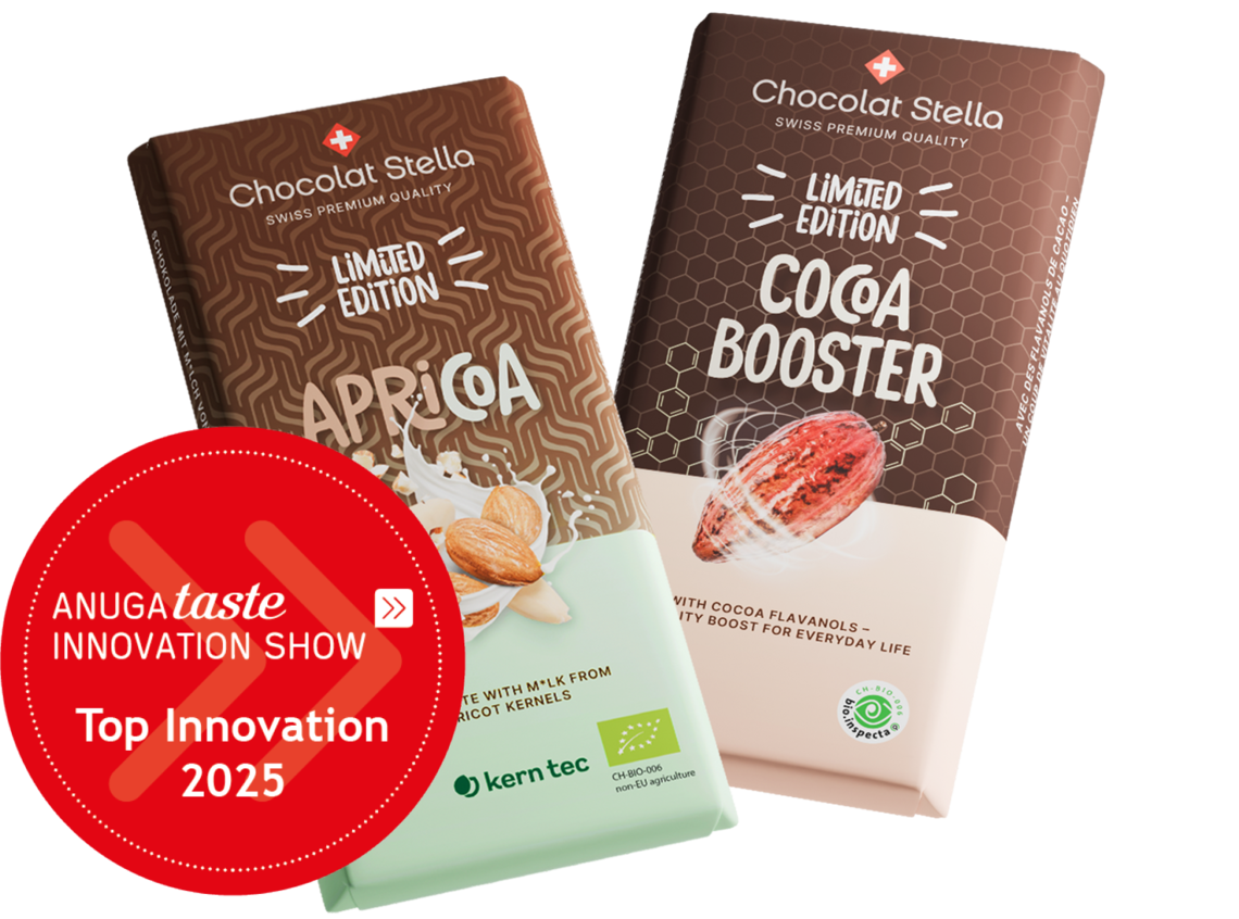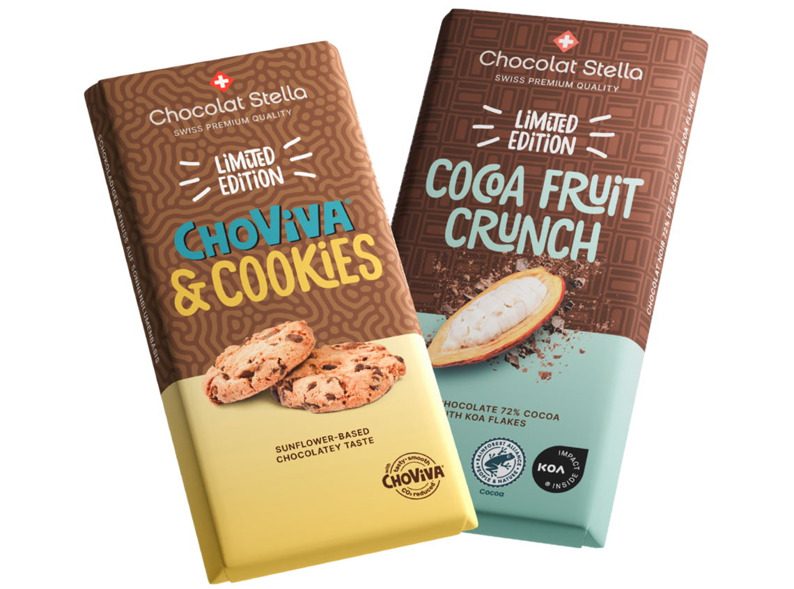 Stella presenta la linea "New Quality & Diversity" con due edizioni limitate. "ChoViva & Cookies", una novità nel mercato svizzero, un'alternativa al cioccolato senza cacao a base di semi di girasole. "Cocoa Fruit Crunch", cioccolato fondente arricchito con scaglie di cacao essiccato.