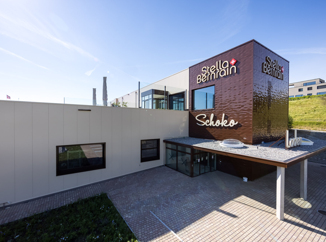 Stella Bernrain acquista il nuovo edificio a Kreuzlingen. Qui ha sede il nuovo Café Stella, con il negozio del cioccolato e il reparto produzione dotato di impianti all’avanguardia.